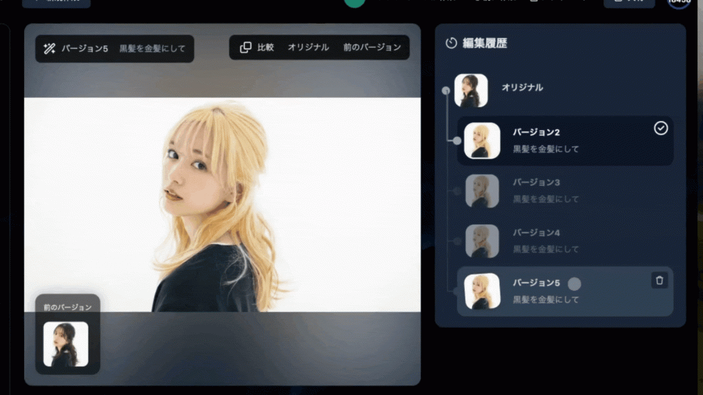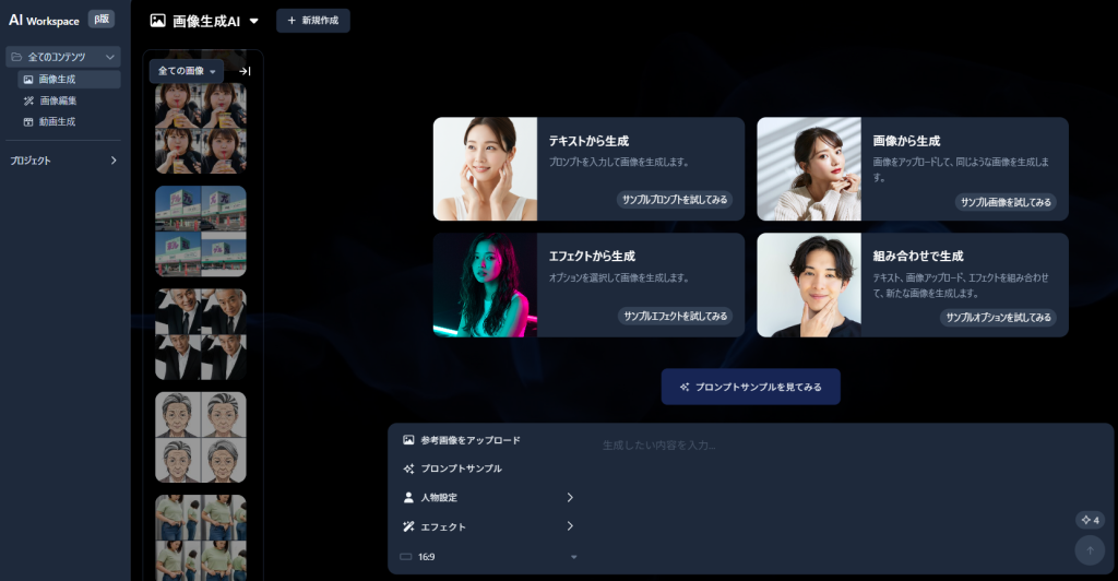 画像編集AIでは、アップロードした画像や生成した静止画素材を編集できます。