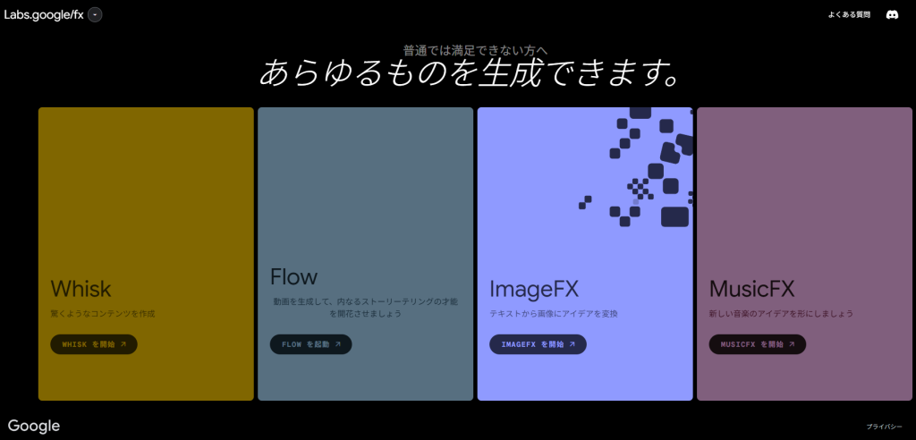 「ImageFX」は、Google DeepMindが開発した画像生成AIツールです。